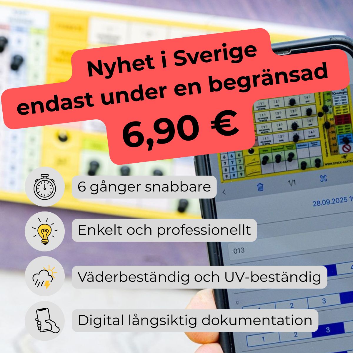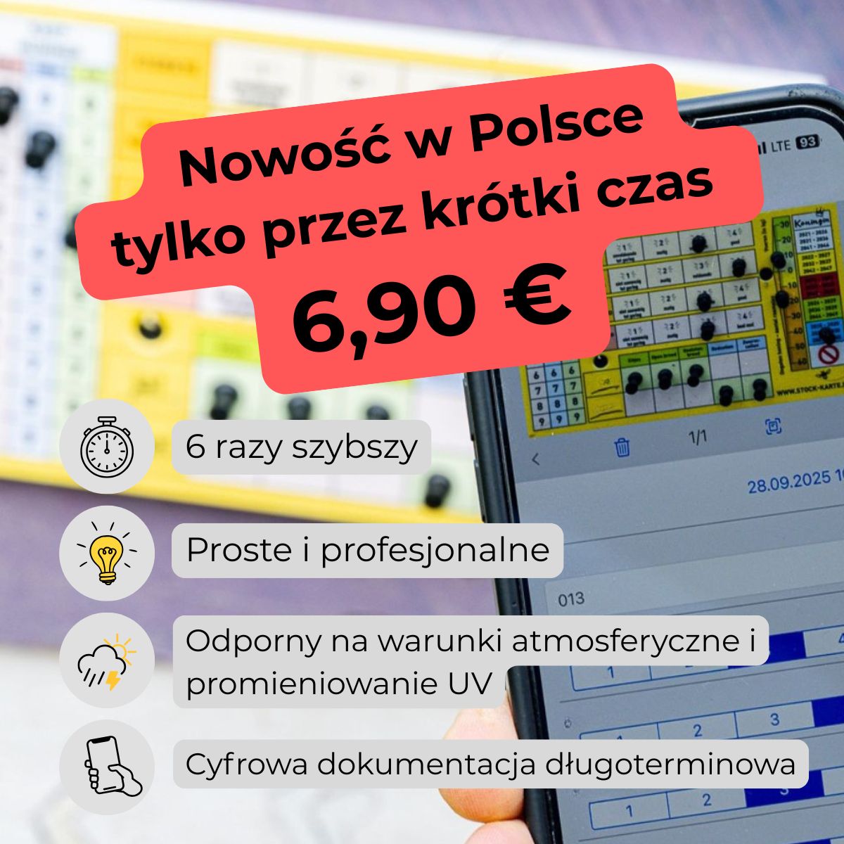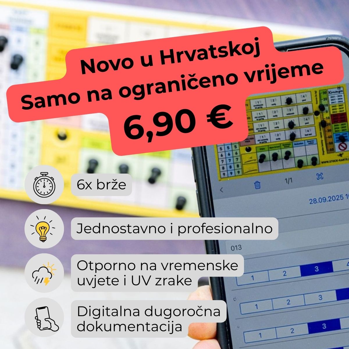 Die Pin-Stock-Karte ist die schnellste und einfachste Möglichkeit, Bienenvölker direkt am Bienenstand zu dokumentieren – auch mit klebrigen Händen oder dicken Handschuhen. Sie wird außen an der Beute befestigt und mit 15 Pins intuitiv bedient. Jede Durchsicht ist in Sekunden erfasst – direkt am Volk, ohne Papier, ohne Nachtragen am Abend und ohne Handy in der Hand. Nachdem der gesamte Bienenstand kontrolliert ist, geht man mit sauberen Händen einmal an den Völkern vorbei und scannt die Karten mit der App PSK Beekeeping. Die App erkennt automatisch die Position der Pins und überträgt alle Werte zuverlässig in die digitale Historie. So entsteht eine dauerhaft nachvollziehbare Dokumentation jedes Volkes – klar, vollständig und jederzeit abrufbar. Die PSK ist wetter- und UV-beständig, gemacht für den jahrelangen Einsatz im Freien.